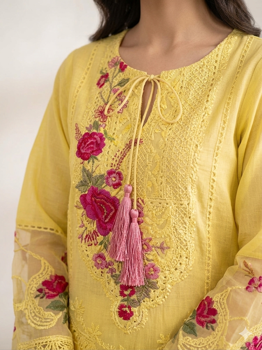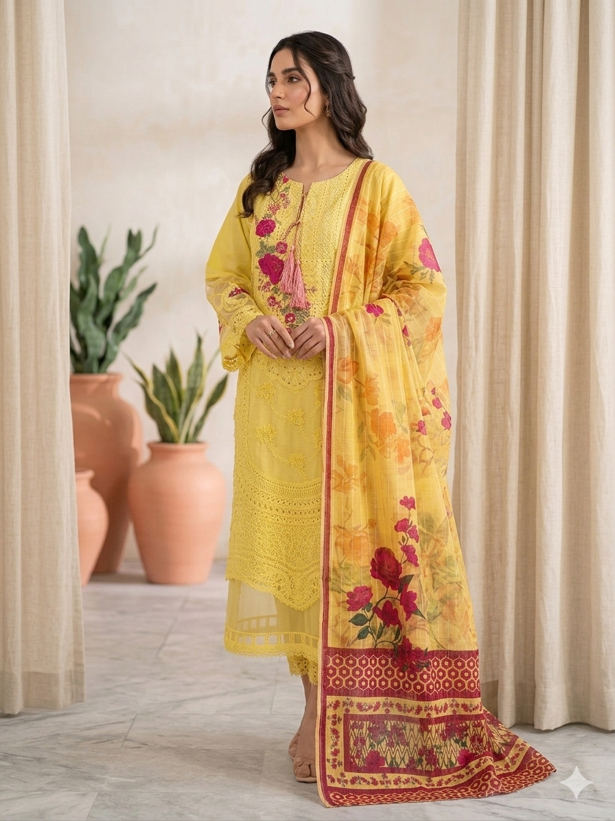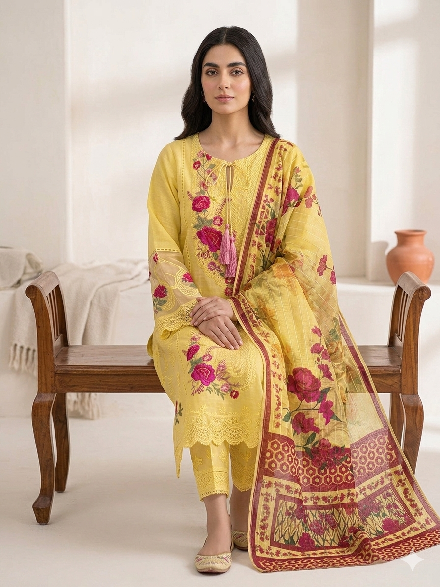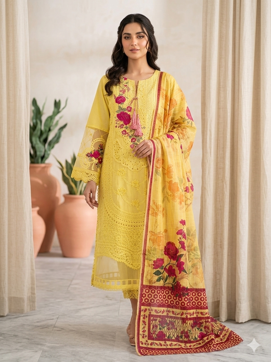 Cotton Lawn Embroidered Shirt 3 Piece Set -STITCHED-Summer Collection