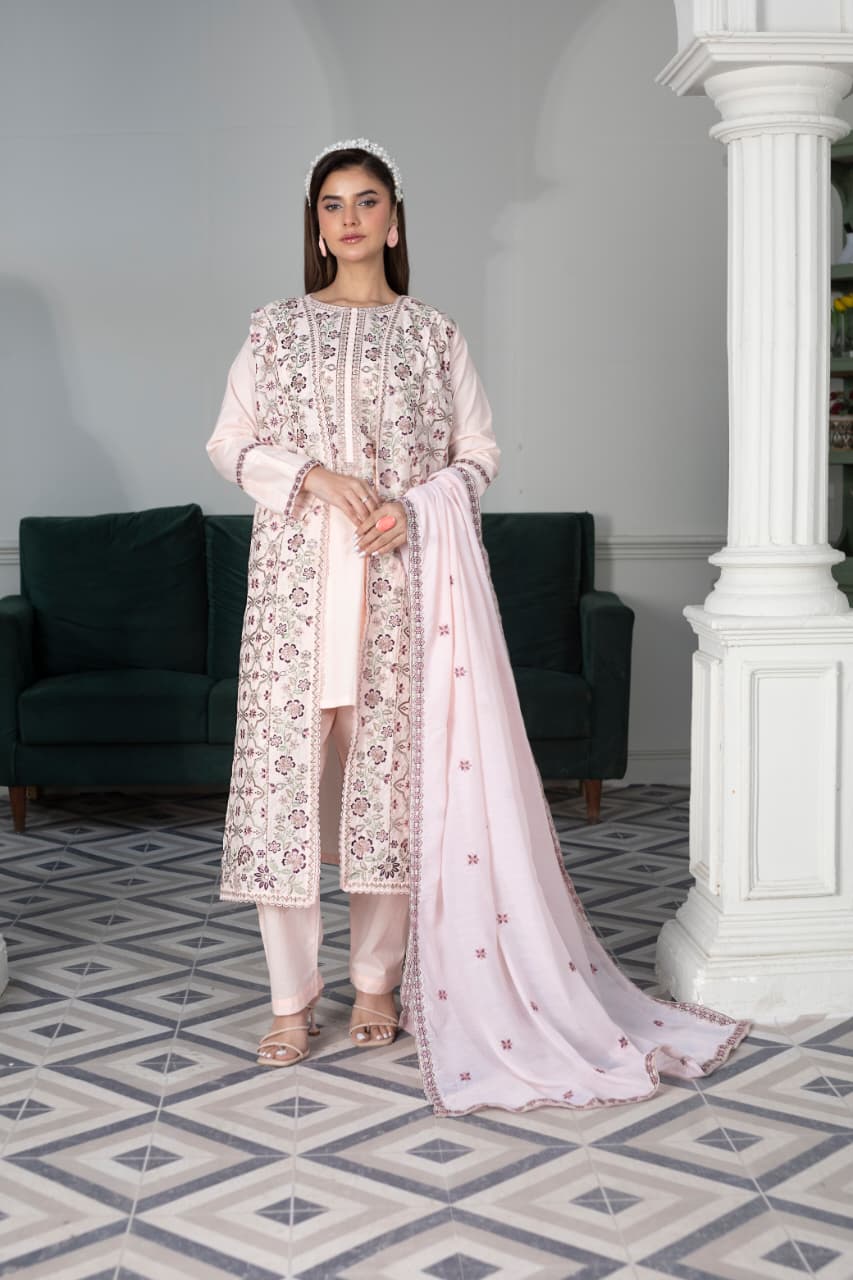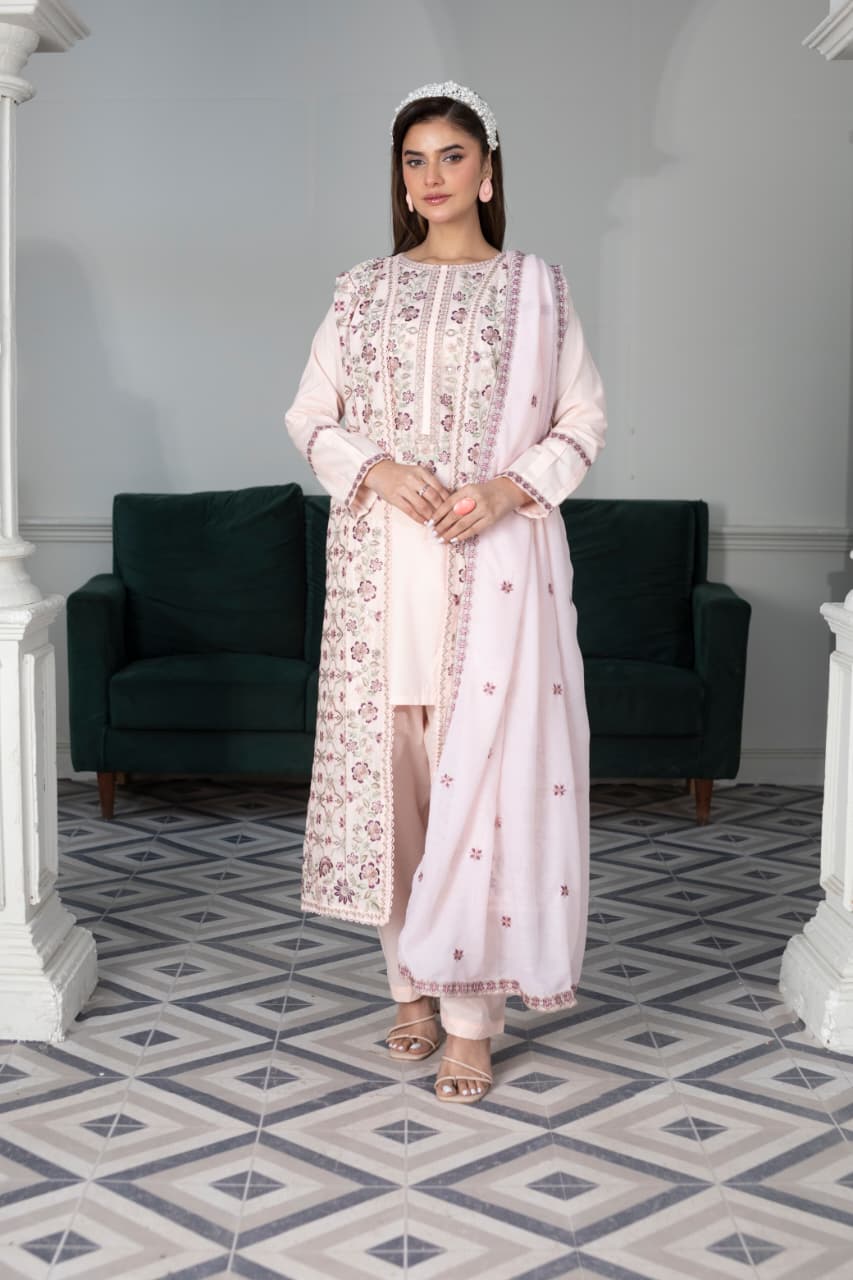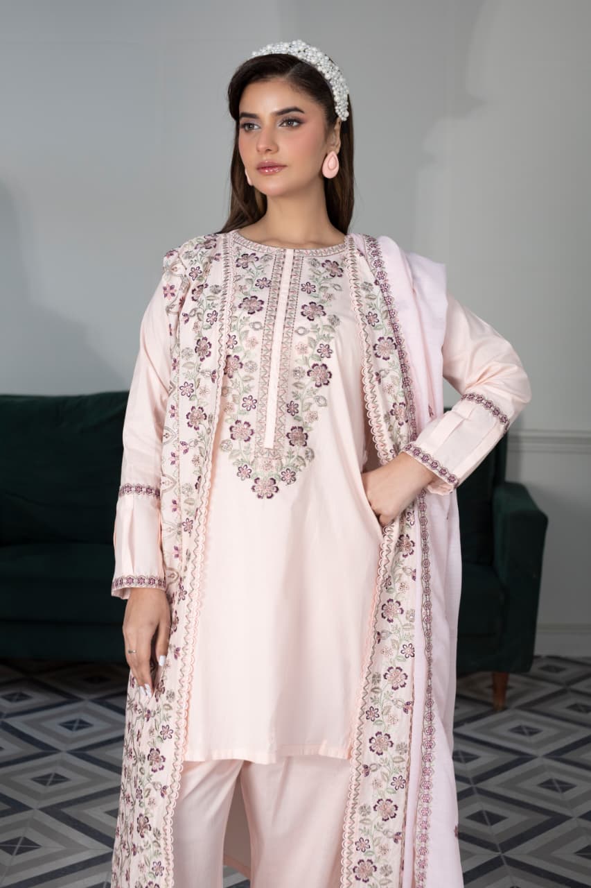 Embroidered 3 Piece Cotton Suit -STITCHED- Summer Collection