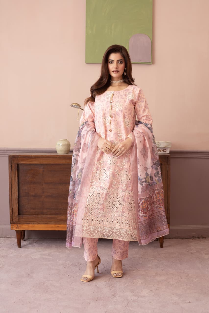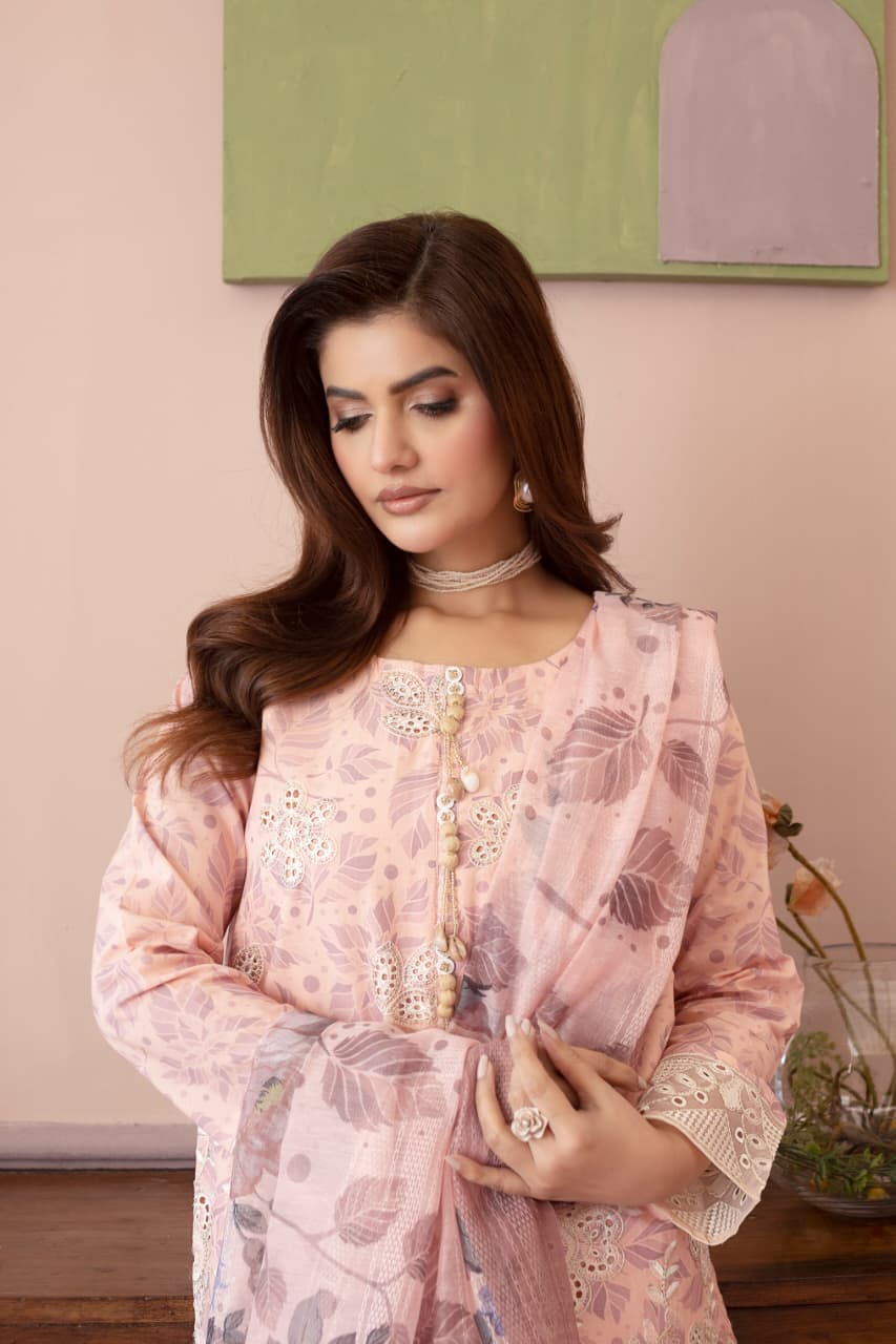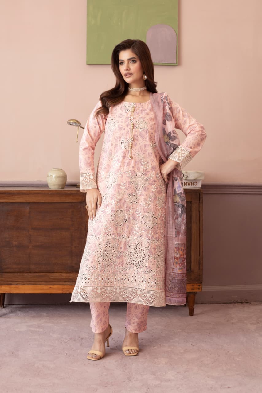 Embroidered 3 Piece Cotton Suit -STITCHED- Summer Collection