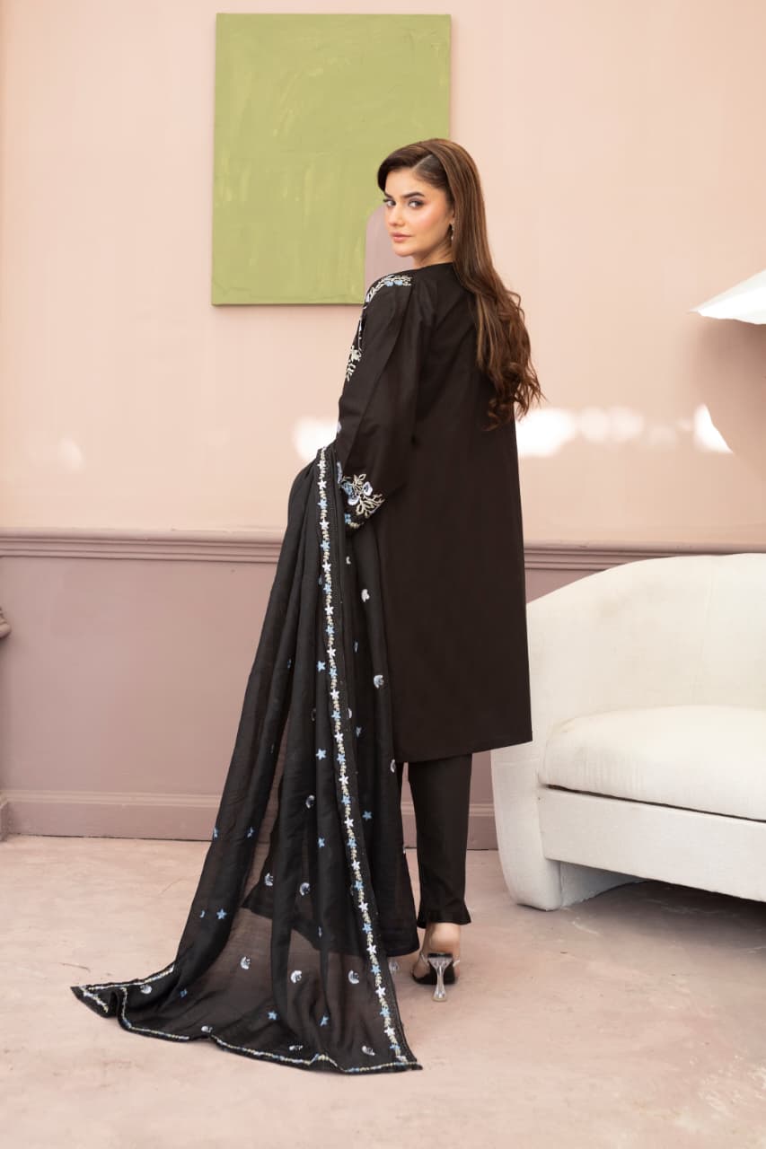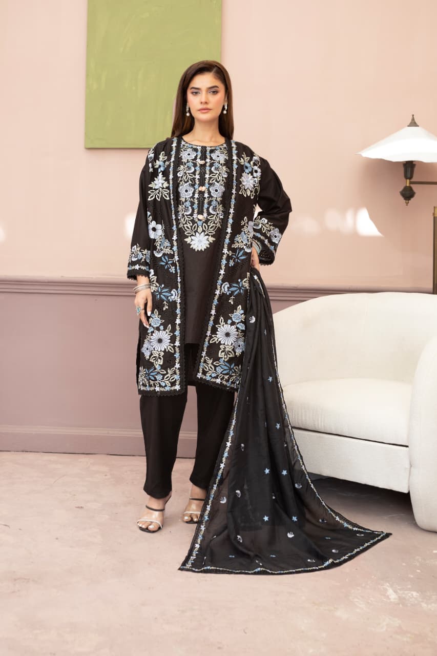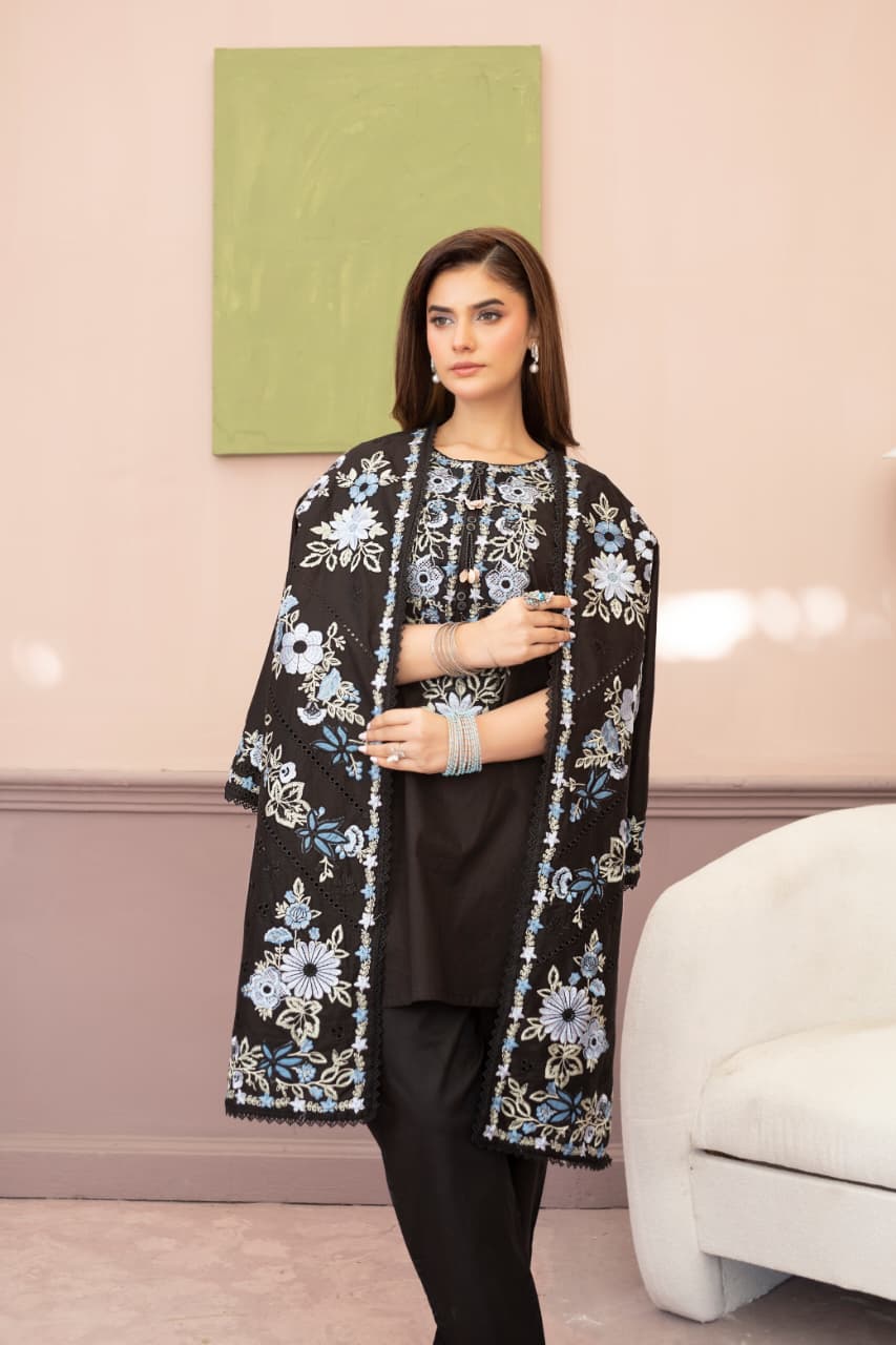 Embroidered 3 Piece Cotton Suit With Short Shirt -STITCHED- Summer Collection