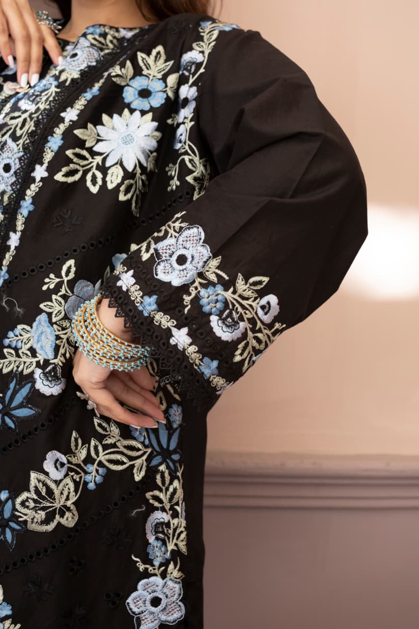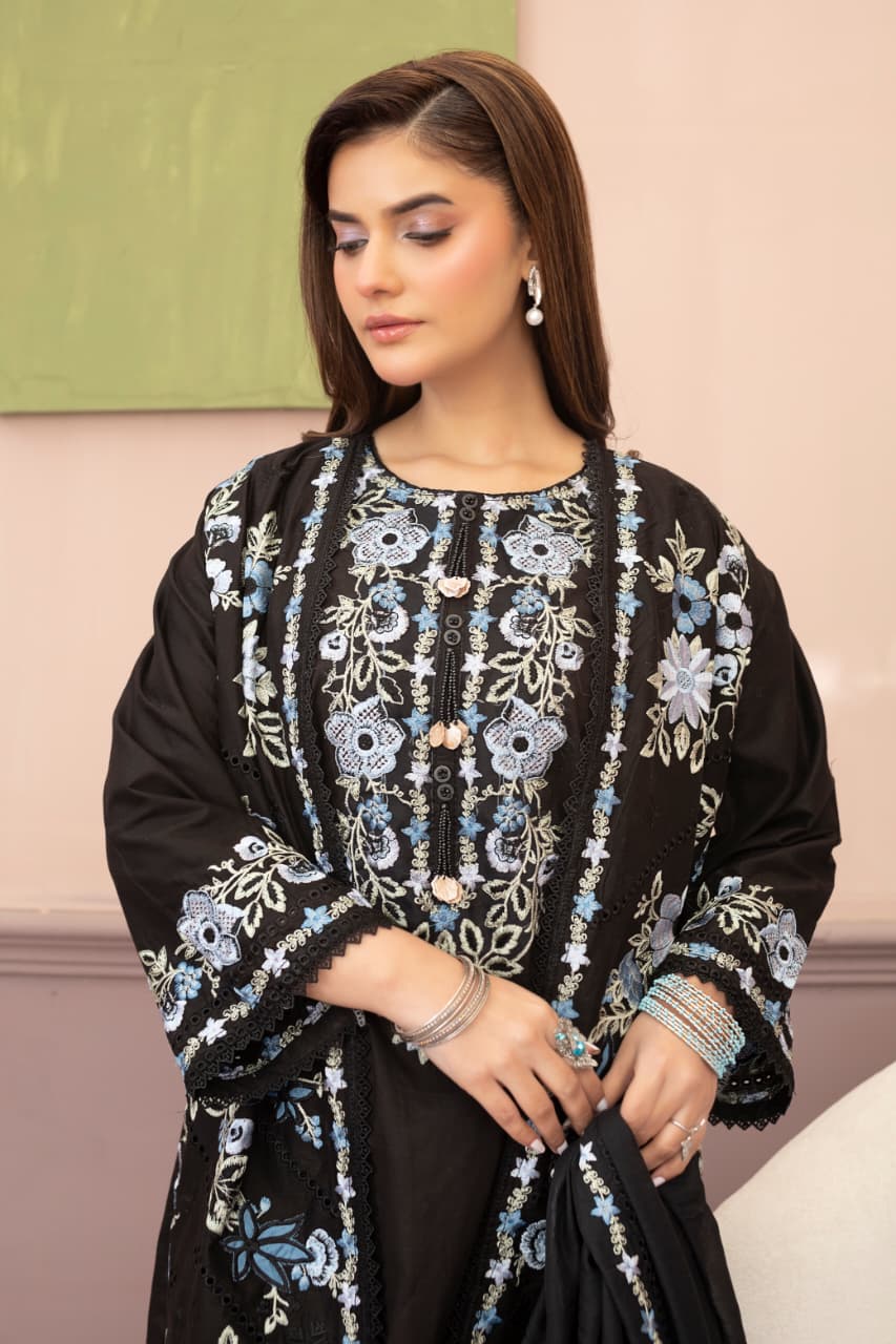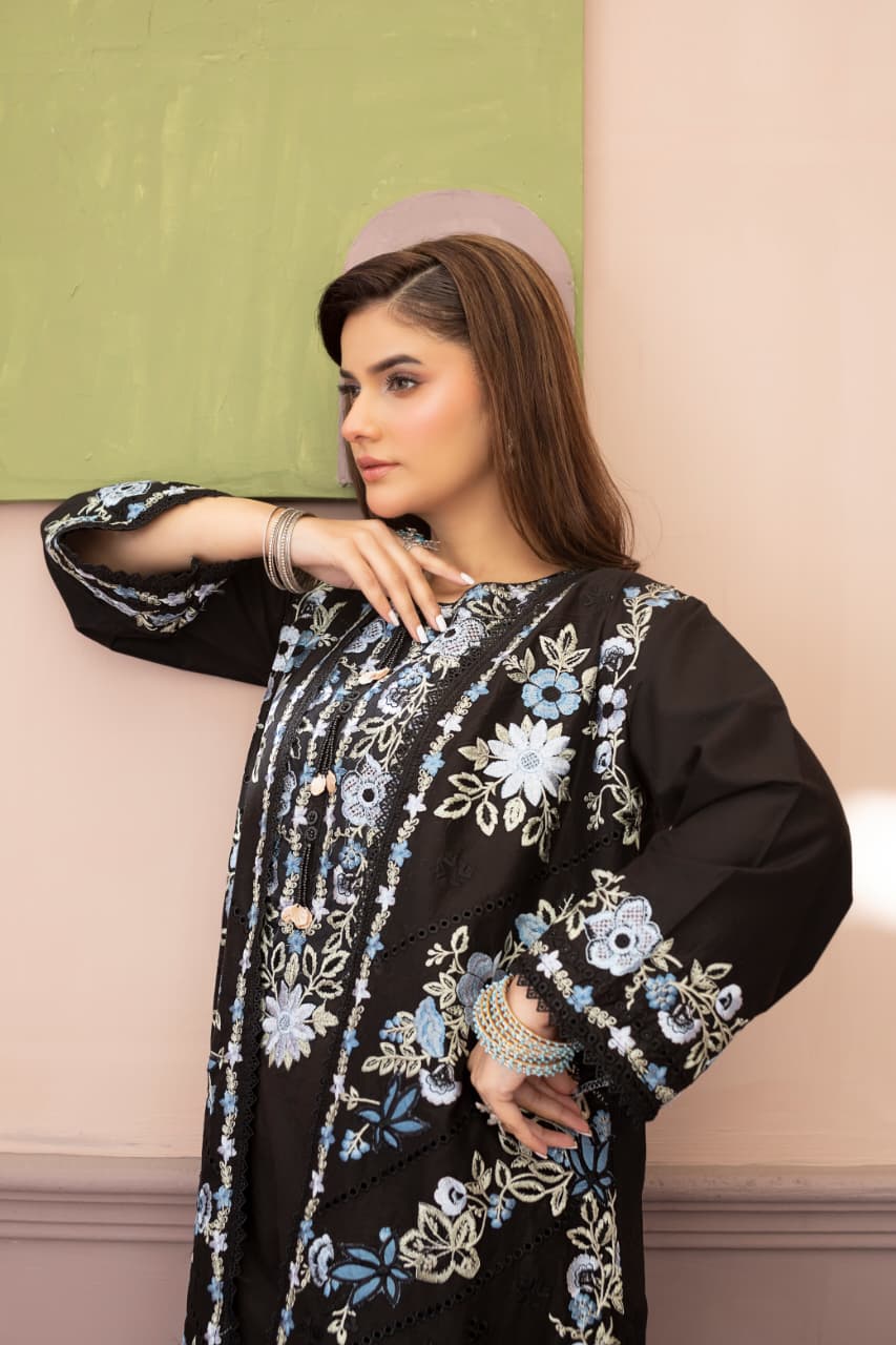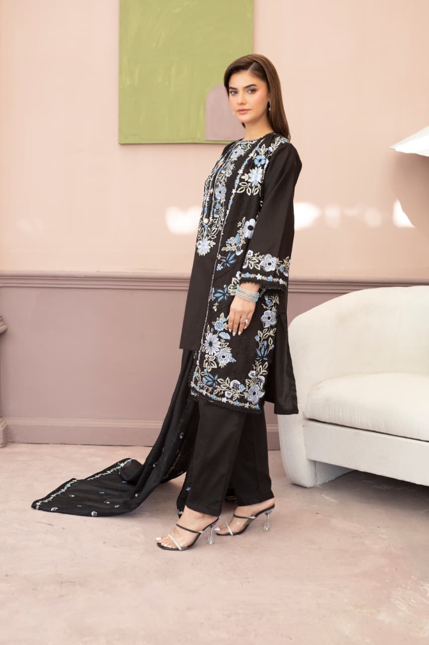 Embroidered 3 Piece Cotton Suit With Short Shirt -STITCHED- Summer Collection