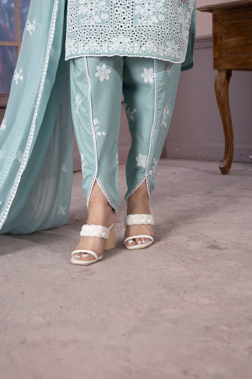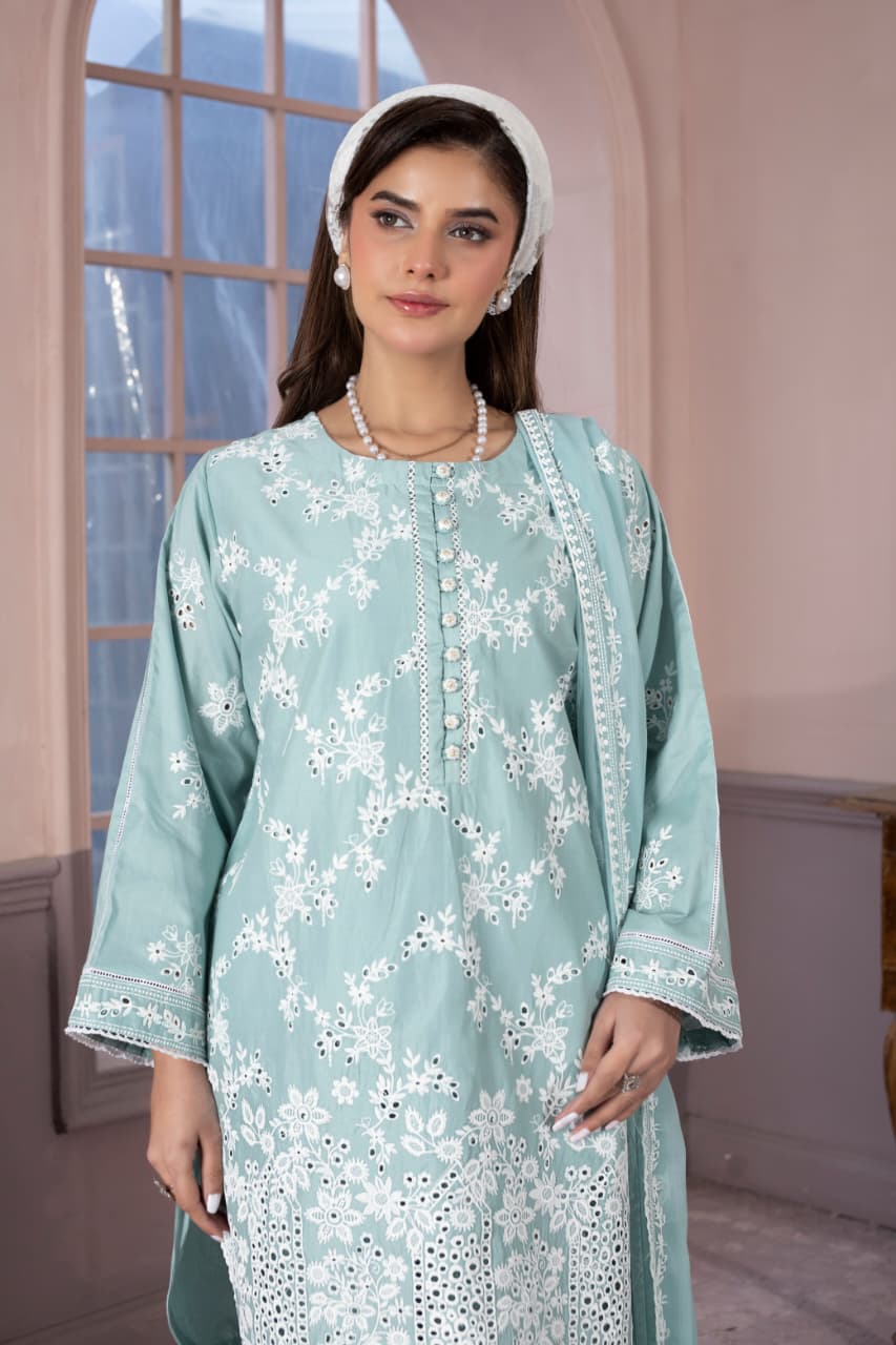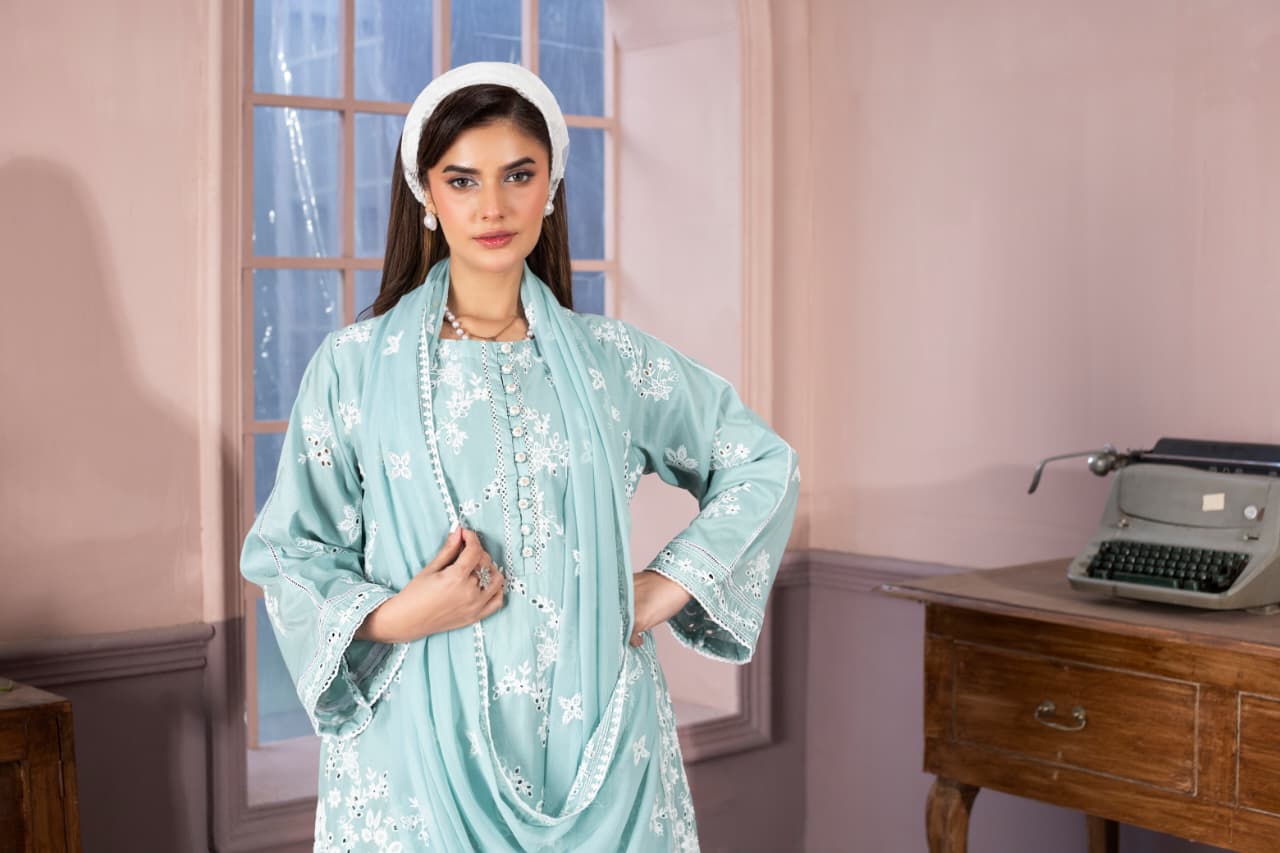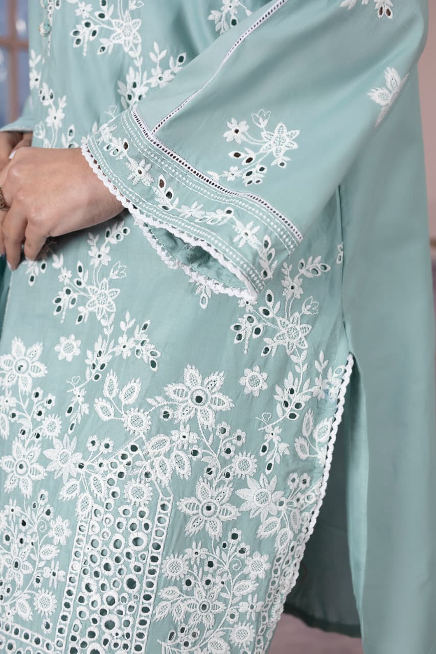 embroidered 3 piece cotton suit with short shirt stitched summer collectionEmbroidered 3 Piece Cotton Suit With Short Shirt -STITCHED- Summer Collection
