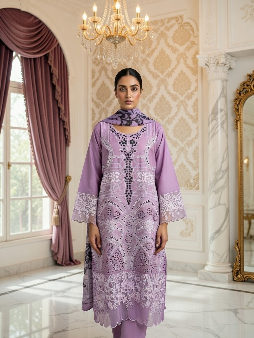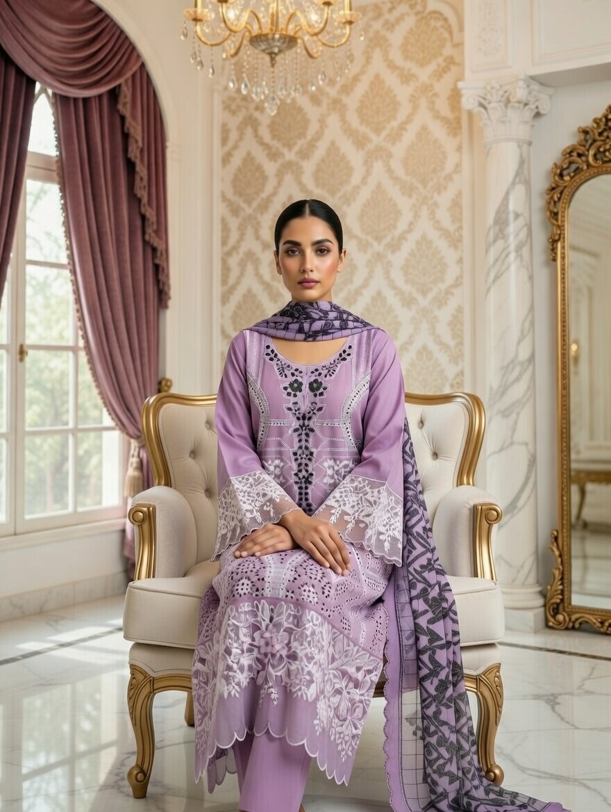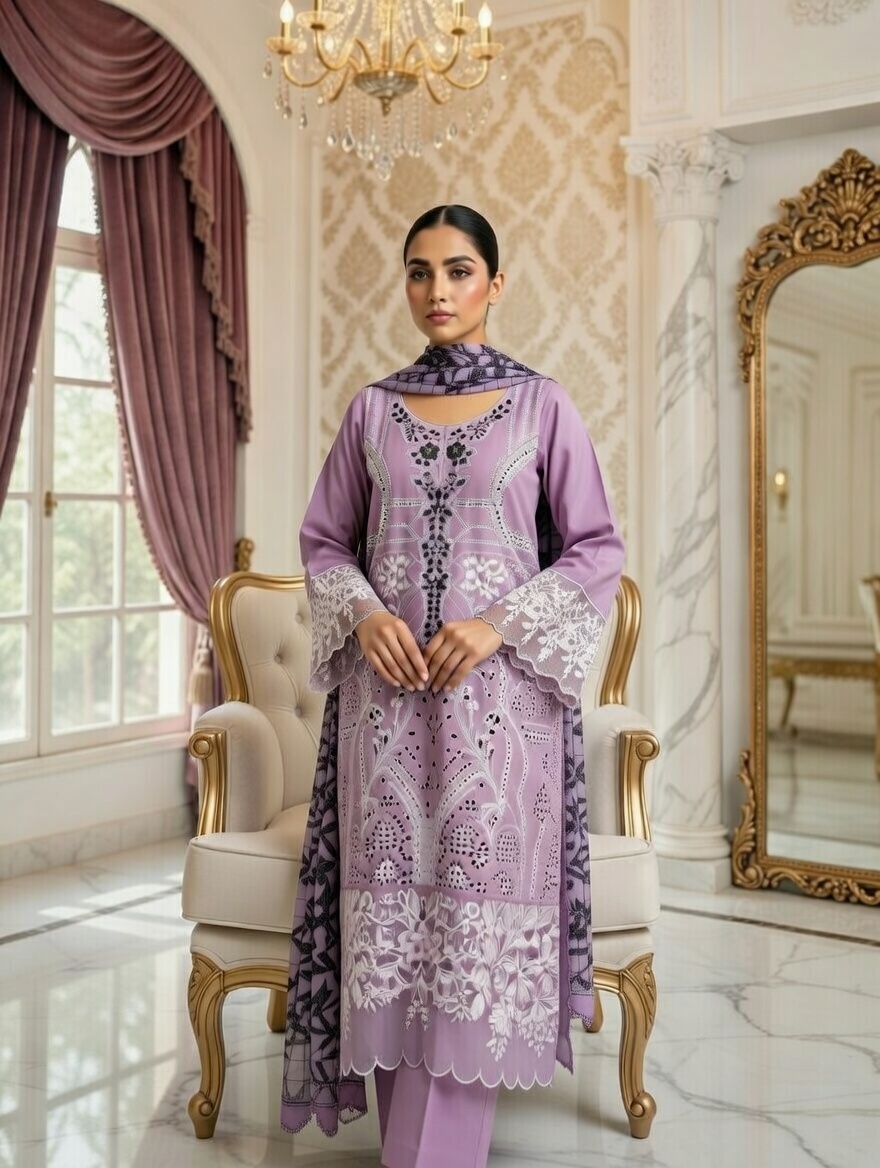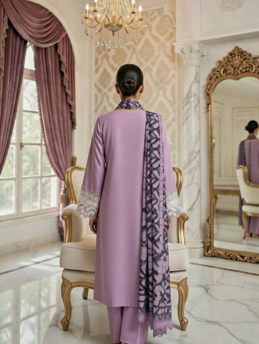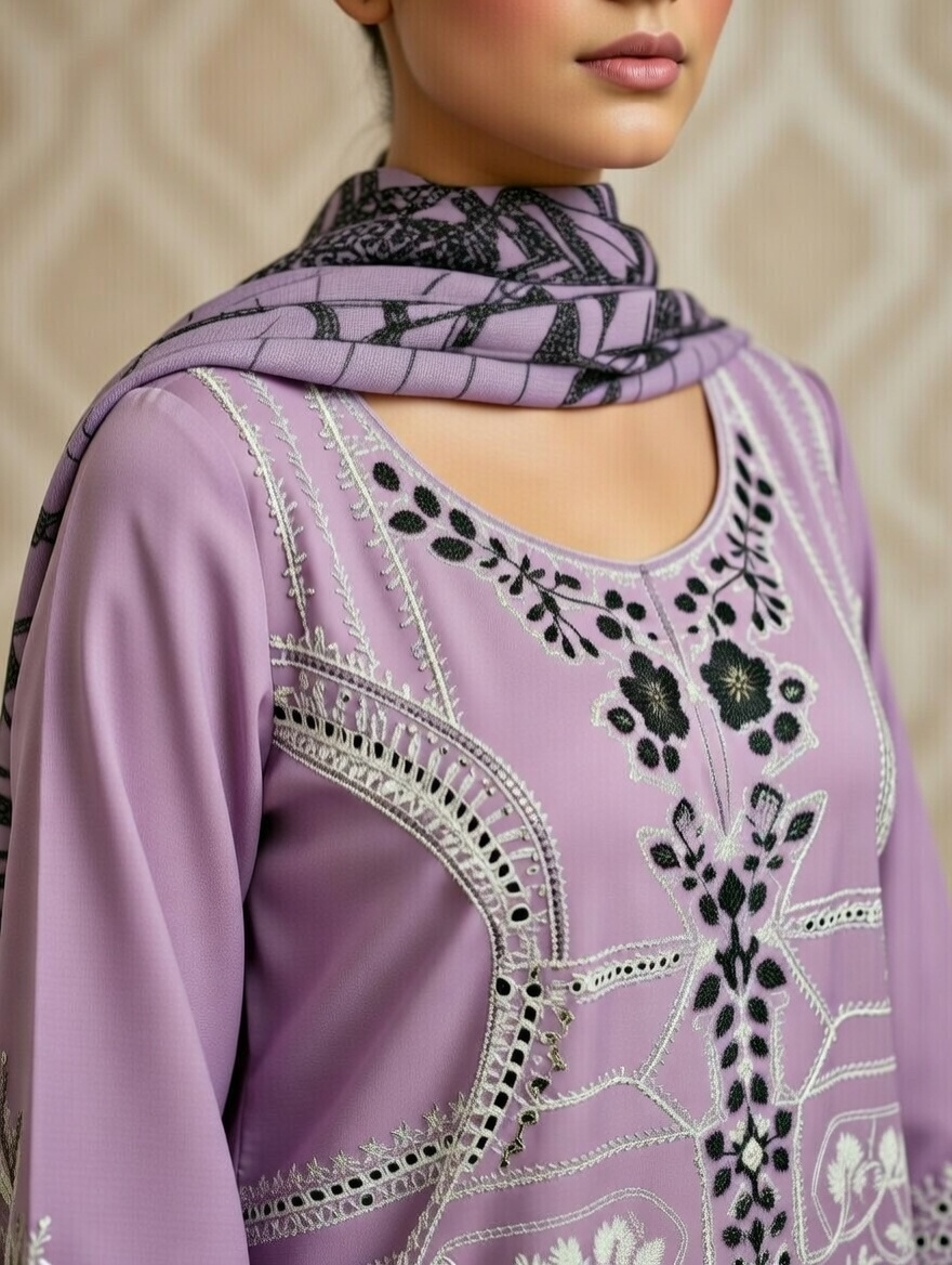 Embroidered Shirt with printed Dupatta and stitched plain Trouser