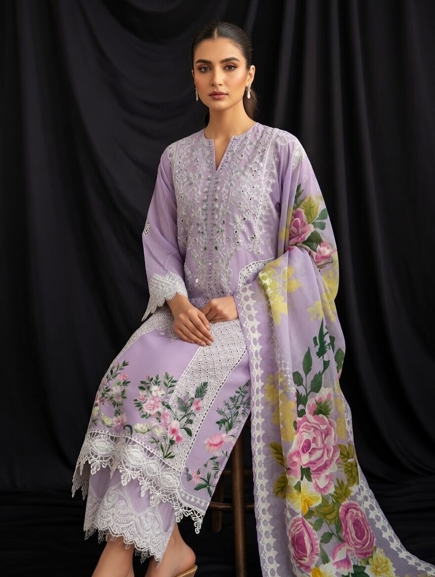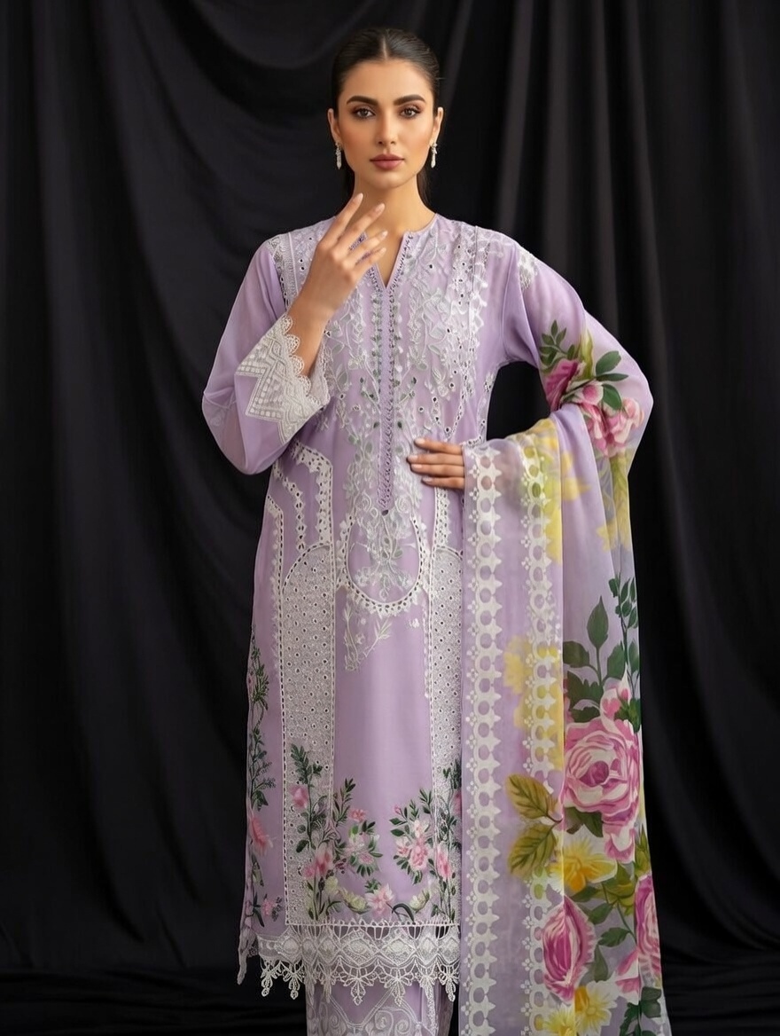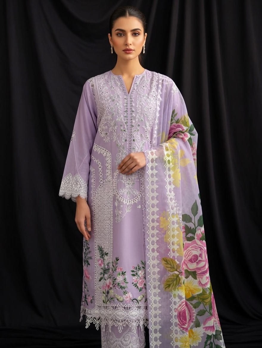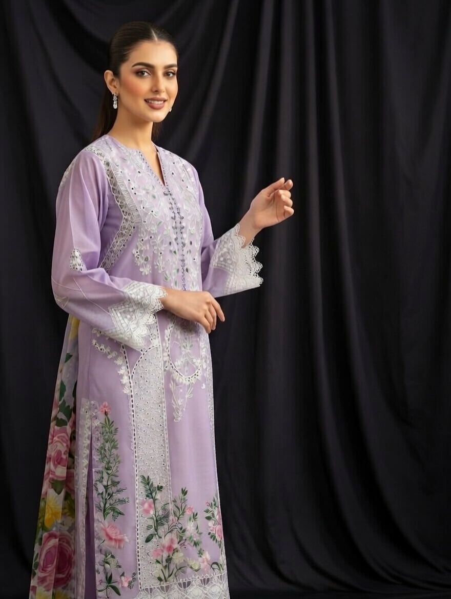 Heavy embroidered shirt and sleeves with dupatta and plain trouser
