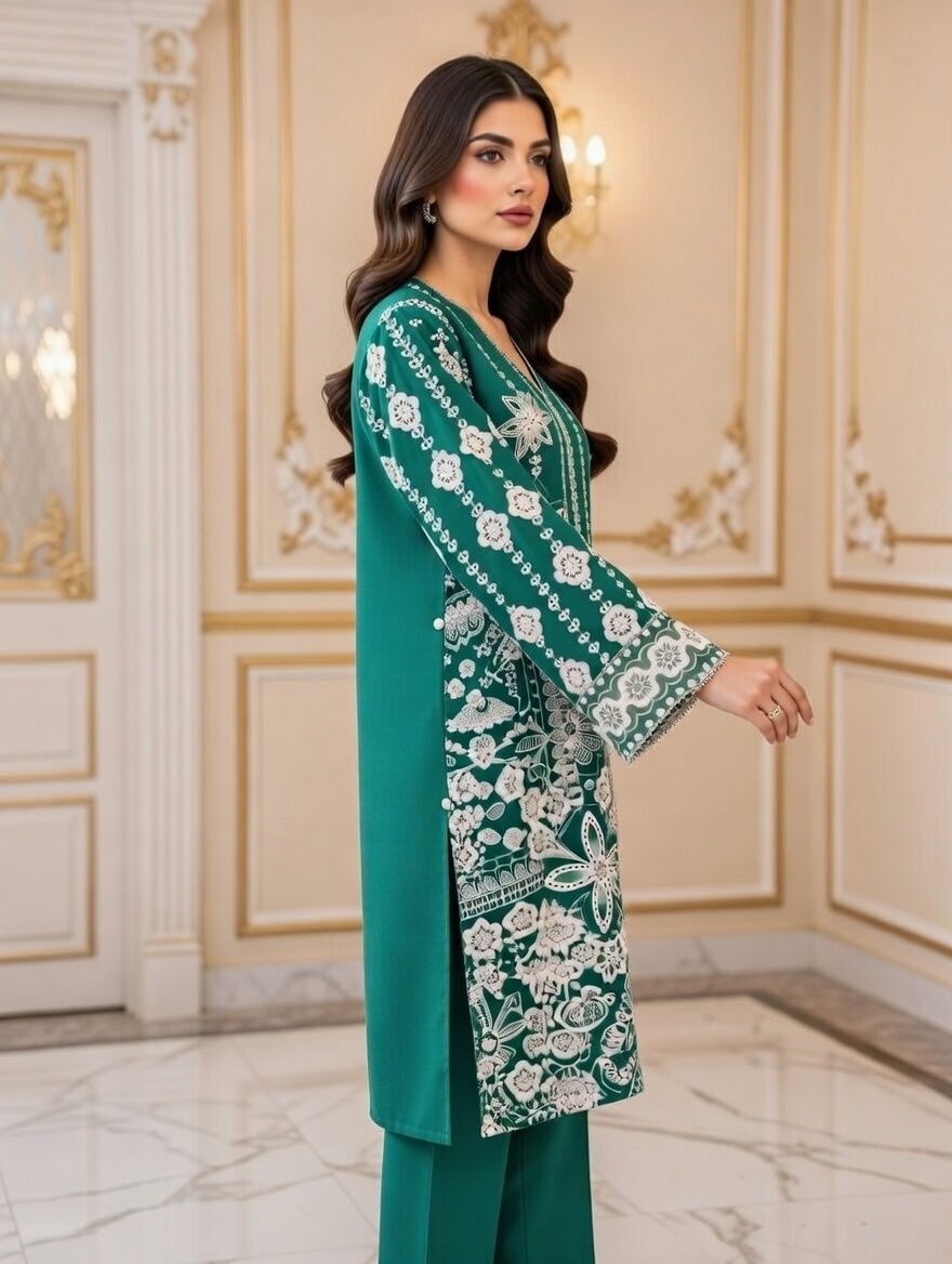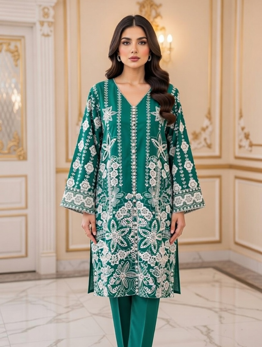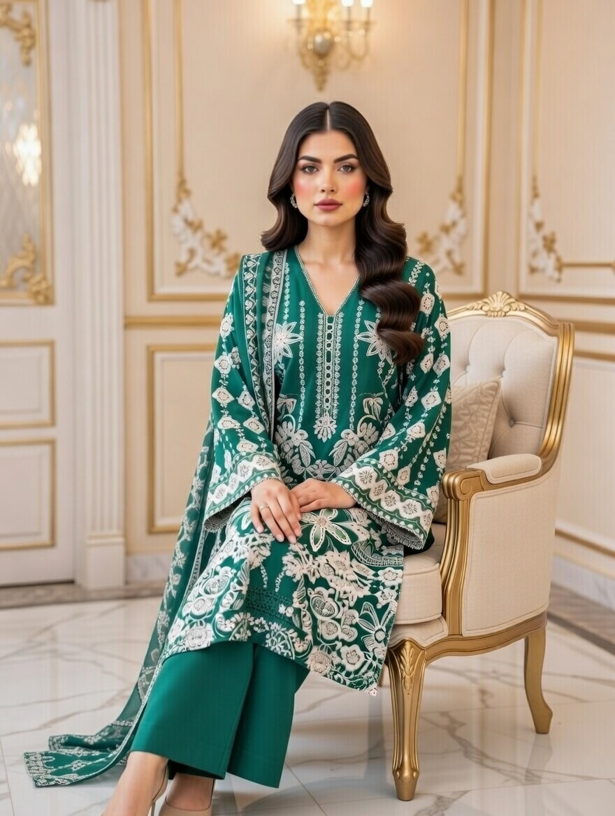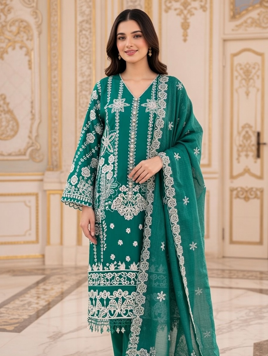 Embroidered Shirt with Embroidered dupatta 3 Piece Cotton Dress