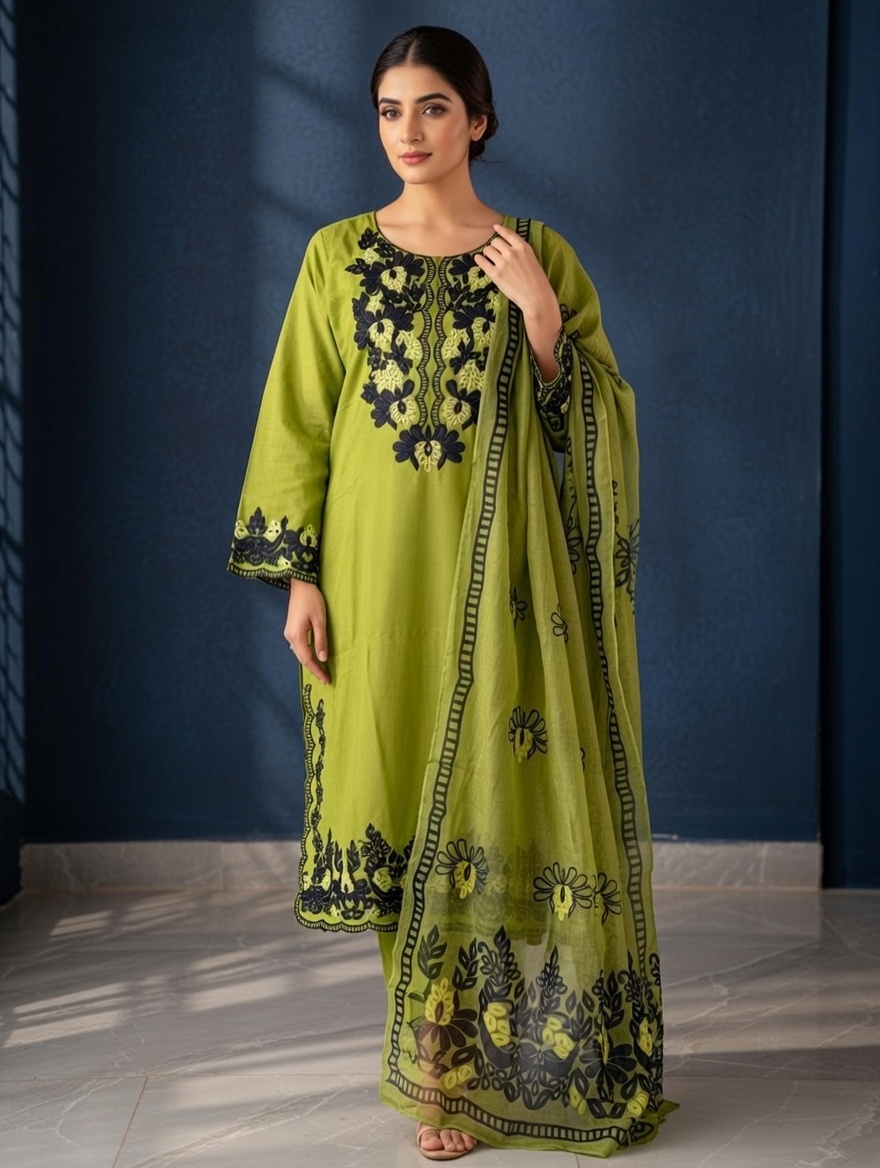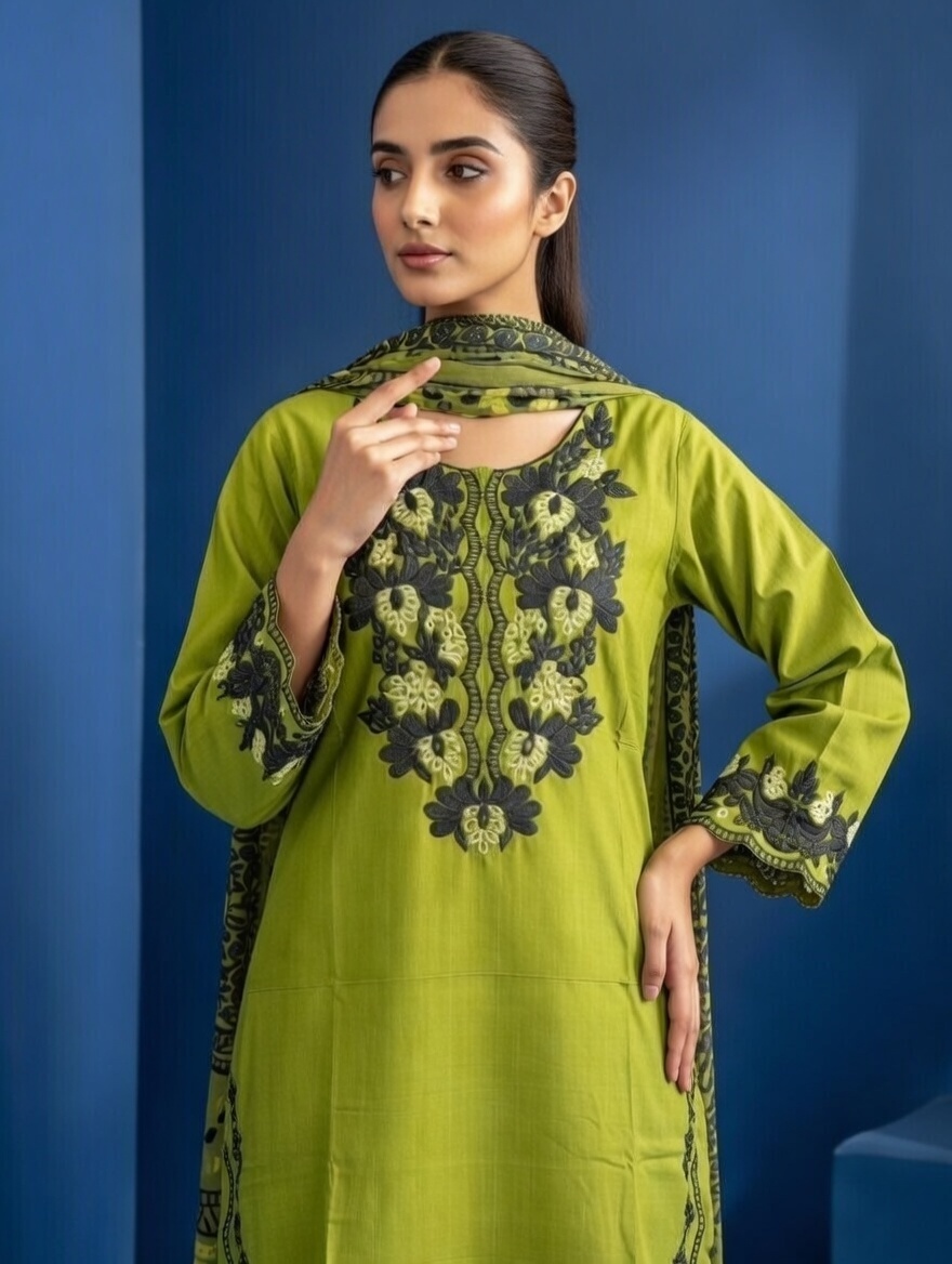 front embroidered cotton lawn 3 piece set stitched summer collectionFront Embroidered Cotton Lawn 3 Piece Set -STITCHED- Summer Collection