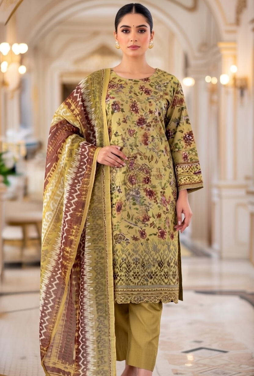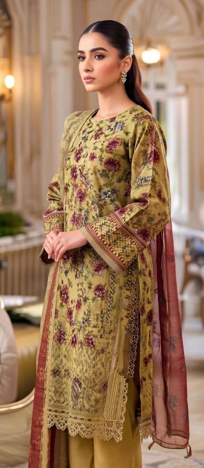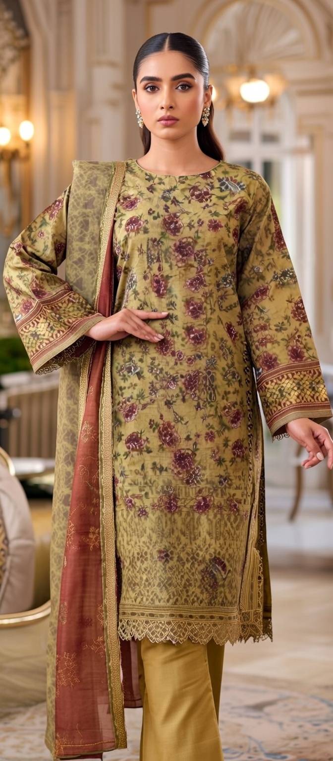 Khaddar Stitched 3pc with Embroidery & Plain Trouser with Printed Duppata