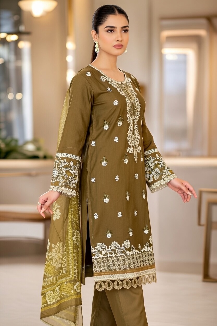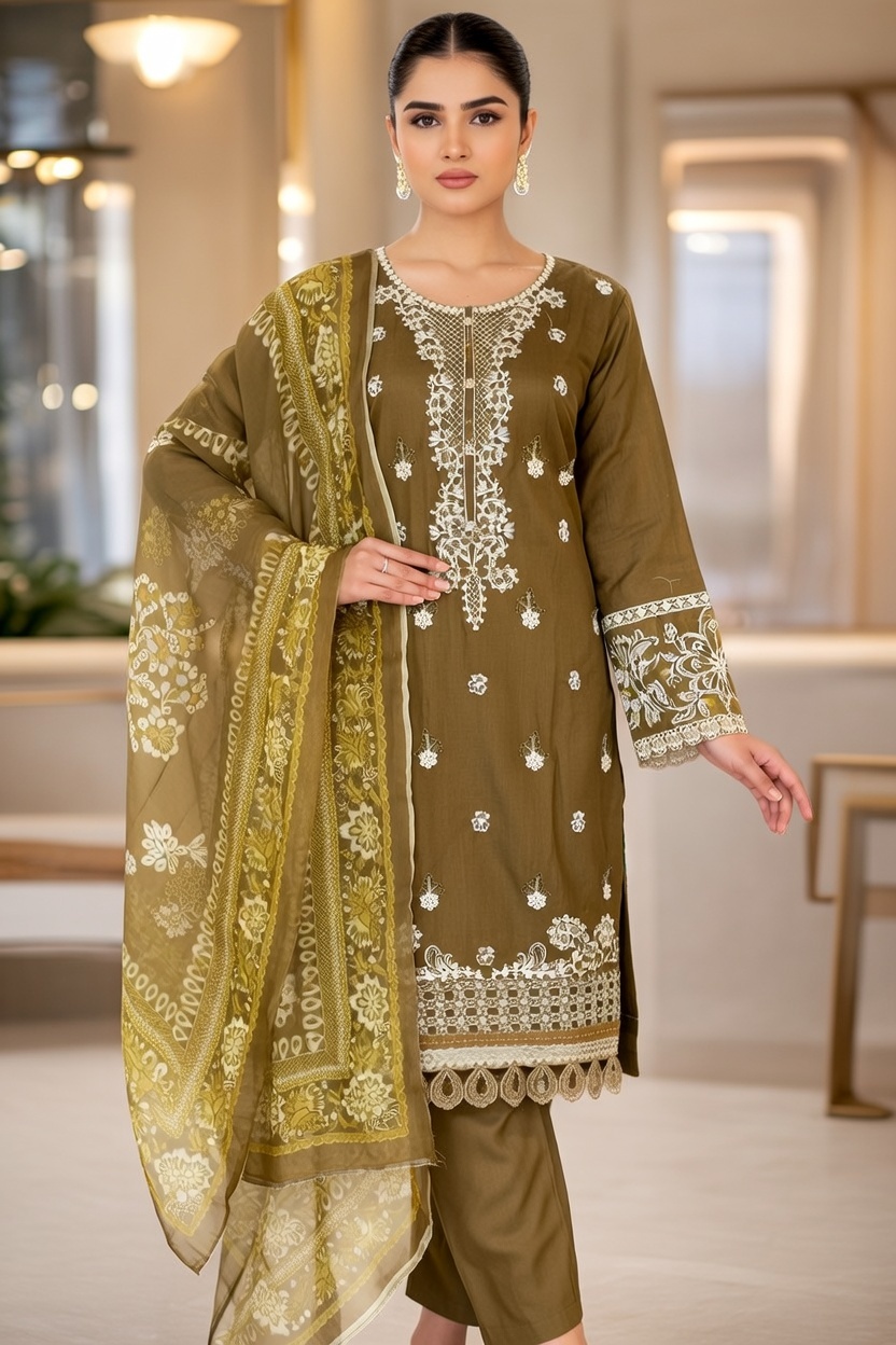 Winter Cotton Embroidered 3pc with Printed Munnar Duppata