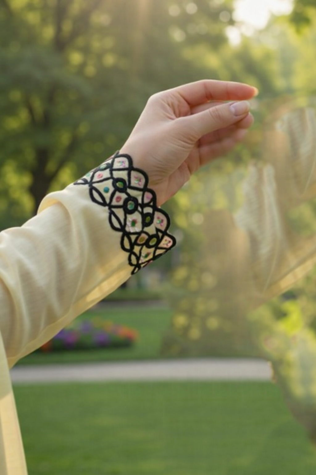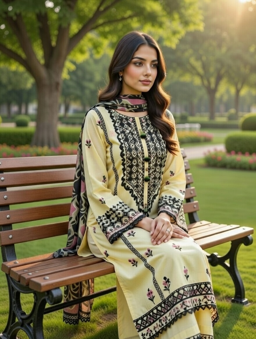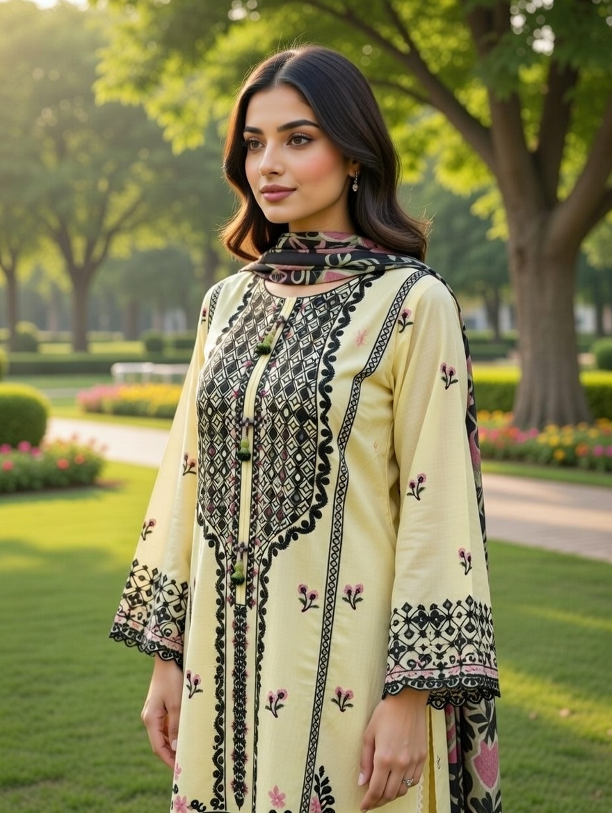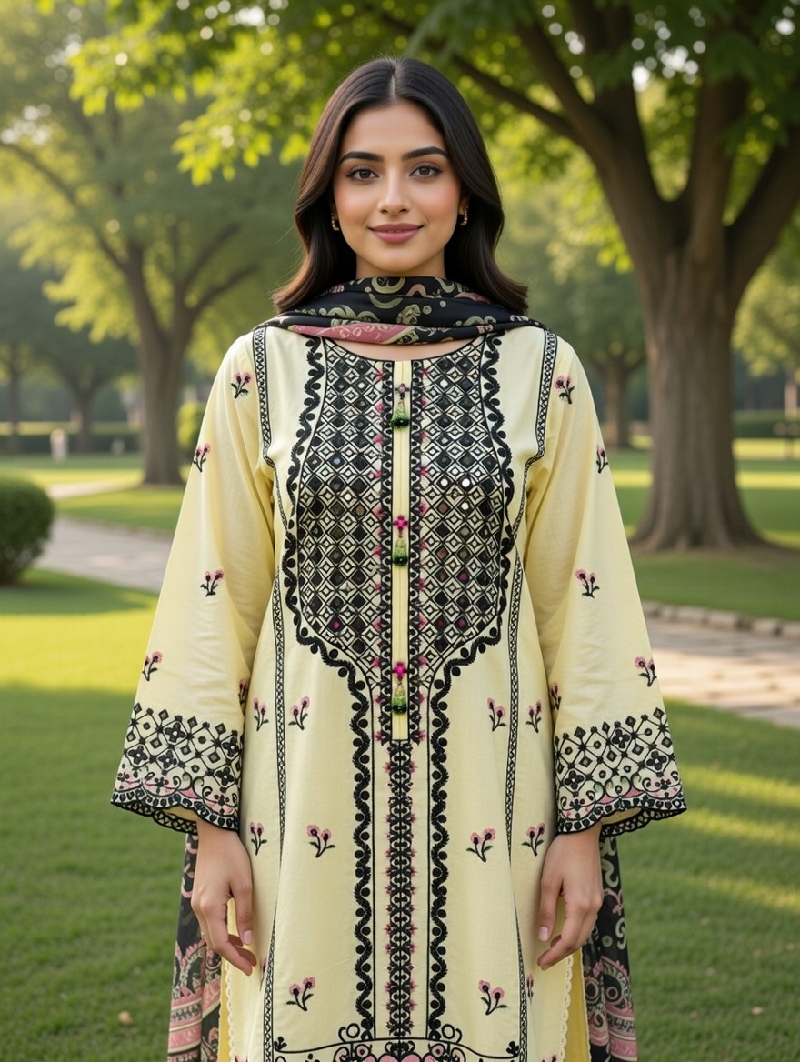 Handcrafted embroidery design with printed Chiffon dupatta and Trouser